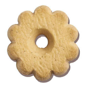 Burro fresco e vaniglia naturale: tanta cremosità e un ricco aroma per un frollino che si scioglie in bocca.