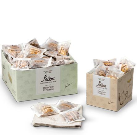 Per la vendita Loison ha pensato alle cosiddette confezioni fai da te in risposta alla frequente richiesta di personalizzare un regalo, dando la possibilità di scegliere liberamente tra i vari biscotti e le diverse capacità dei contenitori. Le scatole da esposizione sono invece studiate in contrasto di colore per far risaltare i biscotti Loison nelle loro belle confezioni monodose.
