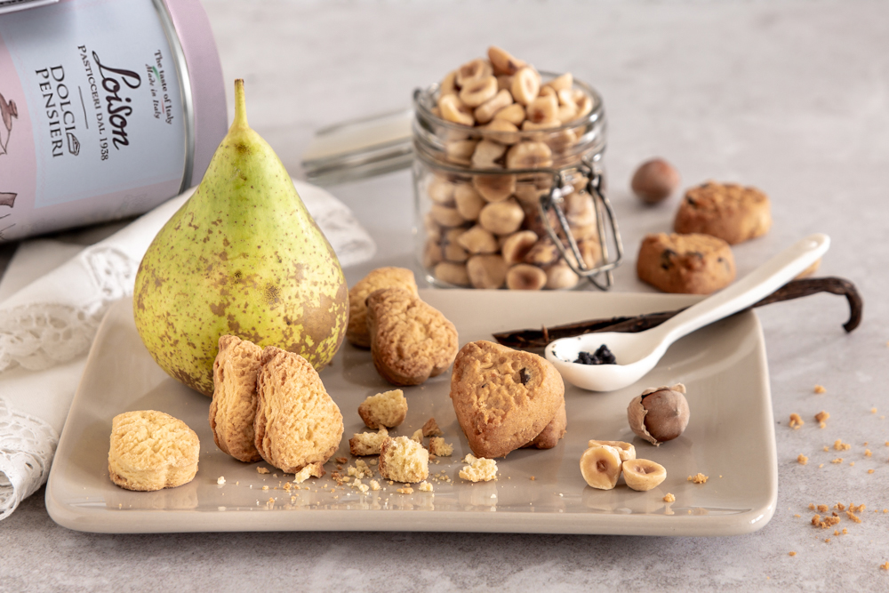 La Biscotteria al burro Loison viene proposta nelle linee Classici, Frutta e Meditazione. I primi – Canestrello, Maraneo, Cacao, Bacetto, Zaletto, Caffè – ideali per tutte le occasioni, dalla colazione all’ora del tè; i secondi – Limone, Albicocca, Pera – da gustare con un bicchiere di vino o un succo; gli ultimi – Camomilla, Amarena e Cannella, Liquirizia – dagli aromi intriganti, perfetti per tisane ed infusi.